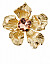 Брошь изготовлена из металла и стекла. Модель имеет дизайн в виде цветка.