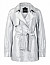 Куртка изготовлена из вискозы, полиамида и полиэстера, подкладка из полиэстера и вискозы. Модель выполнена в свободном крое. Имеет отложной воротник с лацканами, застежку на пуговицах, пояс в тон, прорезные карманы по бокам и длинные рукава с манжетами.
