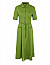 Платье изготовлено из льна, вискозы и эластана. Модель длиной миди выполнена в расклешенном крое. Имеет отложной воротник, короткие рукава с перфорированными манжетами, накладные карманы и пояс-шнур в тон. Декорирован перфорацией на спинке и подоле. Застёгивается на пуговицы.