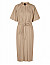 Платье изготовлено из льна, вискозы и эластана. Модель длины миди выполнена в расклешенном крое. Имеет воротник-стойку, короткие рукава, декоративные складки, пояс в тон, прорезные карманы и скрытую планку с пуговицами.