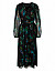 Платье изготовлено из 100% вискозы высокого качества, подкладка из полиэстера. Модель длины миди выполнена в расклешенном крое. Имеет V-образный вырез горловины, застежку на молнии сзади и полупрозрачные длинные рукава с манжетами. Декорировано оригинальным принтом.