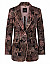Однобортний піджак виготовлений з поліестеру та еластану, підкладка з поліестеру та бавовни. Модель виконана в приталеному крої. Має відкладний комір з лацканами, декоративні клапани, застібку на одному ґудзику та довгі рукави. Декорований квітковим принтом.